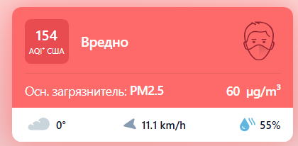 В 09:15 станция мониторинга в столице Узбекистана показывала результат в 154 AQI. Концентрация PM2.5 — в 12 раз выше рекомендуемого ВОЗ среднегодового значения качества воздуха.