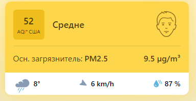 В 08:50 станция мониторинга в столице Узбекистана показывала результат в 52 AQI. Концентрация PM2.5 — в 1,9 раза выше рекомендуемого ВОЗ среднегодового значения качества воздуха.