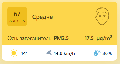 В 09:10 станция мониторинга в столице Узбекистана показывала результат в 67 AQI. Концентрация PM2.5 — в 3,5 раза выше рекомендуемого ВОЗ среднегодового значения качества воздуха.