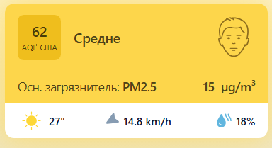 В 09:05 станция мониторинга в столице Узбекистана показывала результат в 62 AQI. Концентрация PM2.5 — в 3 раза выше рекомендуемого ВОЗ среднегодового значения качества воздуха.