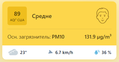 В 09:00 станция мониторинга в столице Узбекистана показывала результат в 89 AQI. Концентрация PM2.5 — в 5,4 раза выше рекомендуемого ВОЗ среднегодового значения качества воздуха.