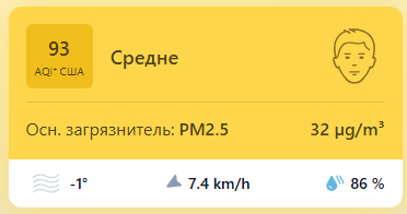 В 08:40 станция мониторинга в столице Узбекистана показывала результат в 93 AQI. Концентрация PM2.5 — в 6,4 раза выше рекомендуемого ВОЗ среднегодового значения качества воздуха.