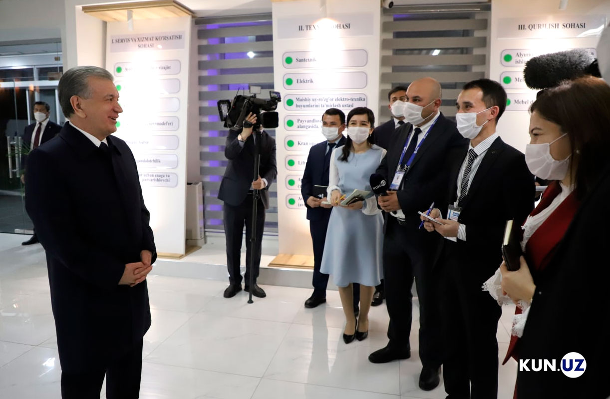 Шавкат Мирзиёев посетил наманганский моноцентр «Ишга мархамат», где встретился журналистами и дал им интервью, сообщает Kun.uz.