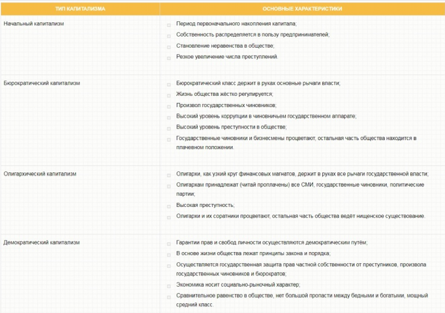 Можно выделить четыре основных типа капитализма. Первый и наиболее неприглядный начальный капитализм - период стихийного становления рыночной системы и так называемого «первоначального накопления капитала». Этот тип капитализма получил и другие названия: дикий, разбойничий и криминальный капитализм.