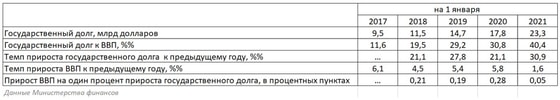 По состоянию на 1 января 2021 года – по данным Министерства финансов – государственный долг Узбекистана составил 23,3 млрд долларов или 40,4 процента по отношению к валовому внутреннему продукту.