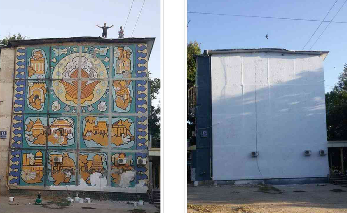 На 24 квартале Чиланзара Ободуи замазали мозаику в виде лица женщины, созданную белорусскими строителями в память о внесенном ими вкладе в восстановление города после разрушительного землетрясения 1966 года, сообщается в группе «Общественный контроль» в Facebook.