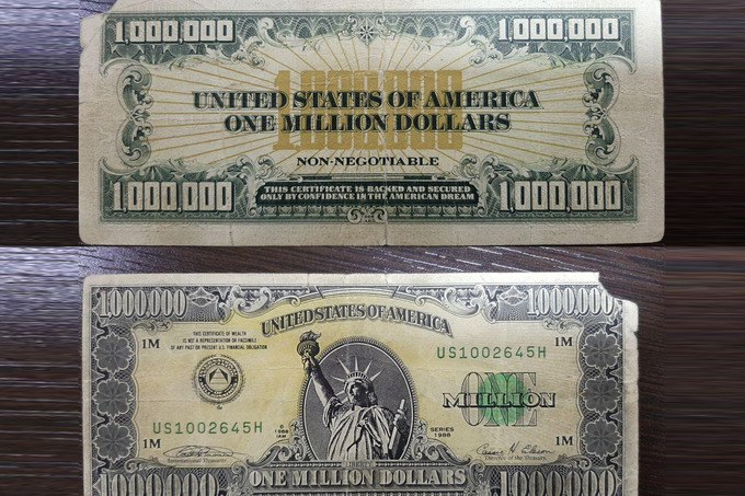 По данным банкнота в $1 млн была выпущена в качестве сувенира и не считалась законным платежным средством и валютной ценностью. Мужчина, войдя в доверие к человеку, попытался продать его в 100 раз дешевле.