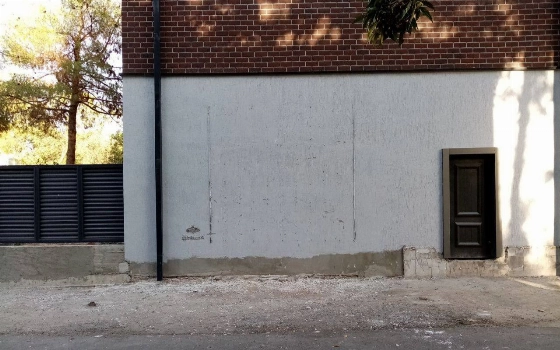 На фотографии видно, что на стене, где ранее было нарисовано граффити остался только логотип художника.