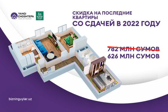 В жилом комплексе Yangi Choshtepa остались последние квартиры со сдачей в 2022 году. Они сдаются с законченным ремонтом, поэтому вы сможете въехать в новое жилье в ближайшее время.