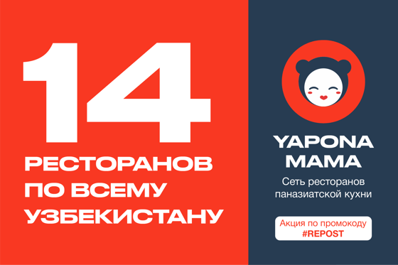 Только для читателей Repost.uz действует скидка 20% по промокоду REPOST -20% навынос, доставку и посещение ресторанов!*