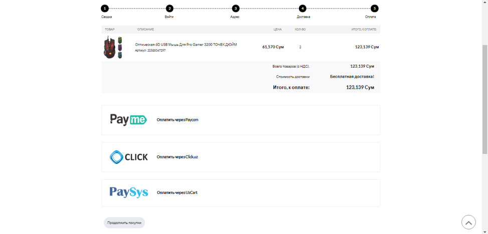 Оплатить свои покупки можно посредством UzCard (Payme, Click, Beepul).