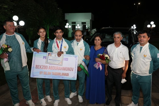 Бронзовые призеры Давлат Бобонов (дзюдо) и Бекзод Абдурахманов (вольная борьба) получили сертификаты на 50 тысяч долларов, автомобили Trailblazer и 2-х комнатные квартиры.