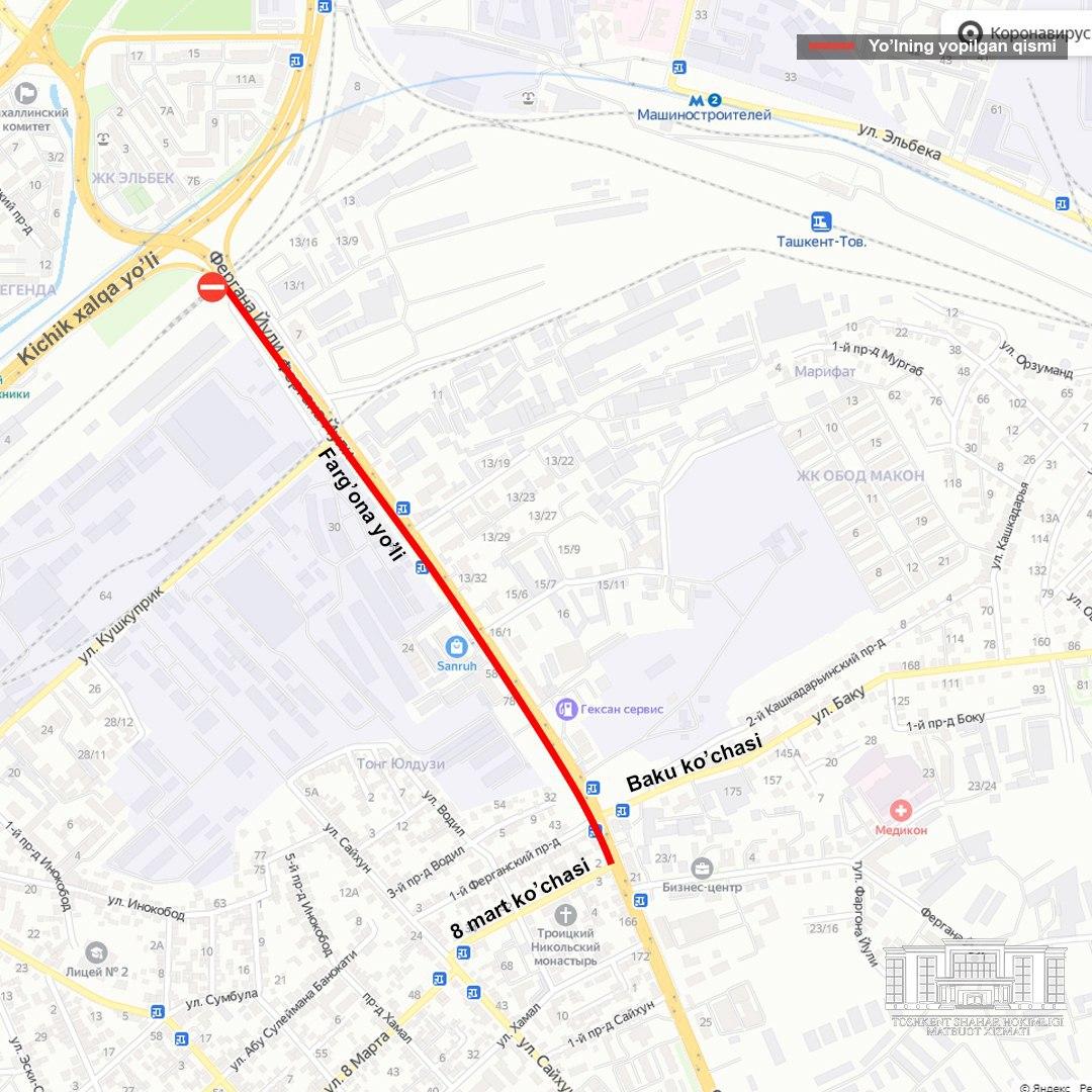 Начиная с 23:00 часов 8 июня начнётся реконструкция одной стороны автомобильной дороги Фаргона йули — от пересечения с Малой кольцевой автодорогой до пересечения с улицей 8 марта, пишет пресс-служба столичного хокимията.