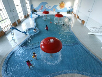 На территории расположены четыре летних бассейна, два больших бассейна для взрослых и два маленьких – для детей. Бассейны оборудованы системами фильтрации и подсветкой.